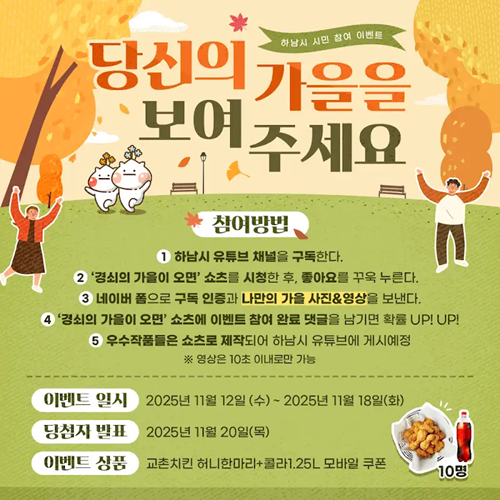 - 당첨자는 하남시 유튜브 커뮤니티 게시판을 통해 발표합니다.