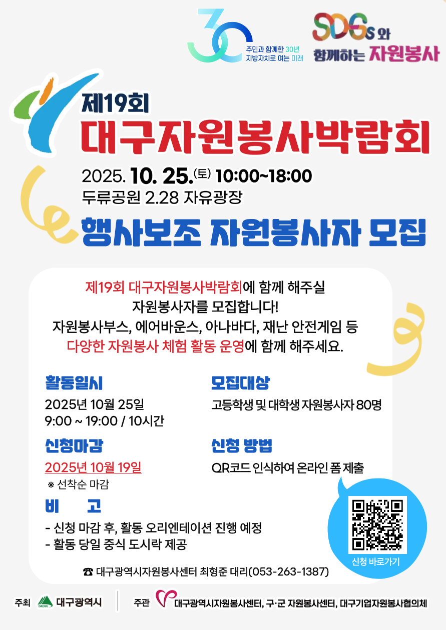 「제19회 대구자원봉사박람회」행사보조 자원봉사자 모집