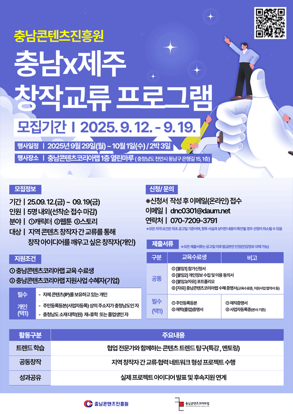 [충남콘텐츠진흥원] 충남×제주 창작교류 프로그램 참가자 모집