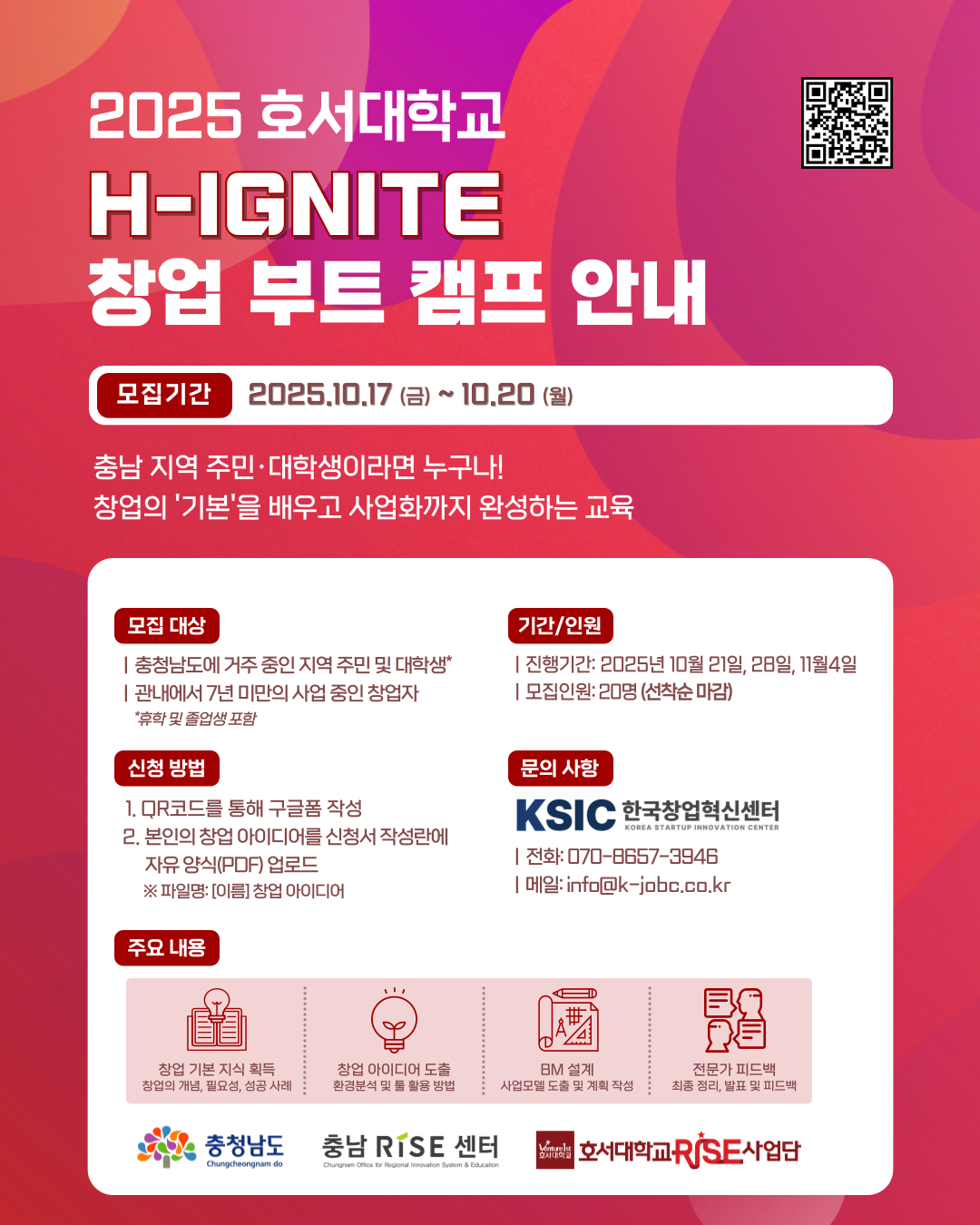 호서대학교 H-IGNITE 창업 부트 캠프가 여러분의 아이디어를 현실로 만들어 드립니다!