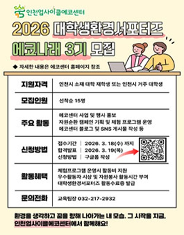 - 전화 문의: 인천업사이클에코센터 교육팀 032)217-2932