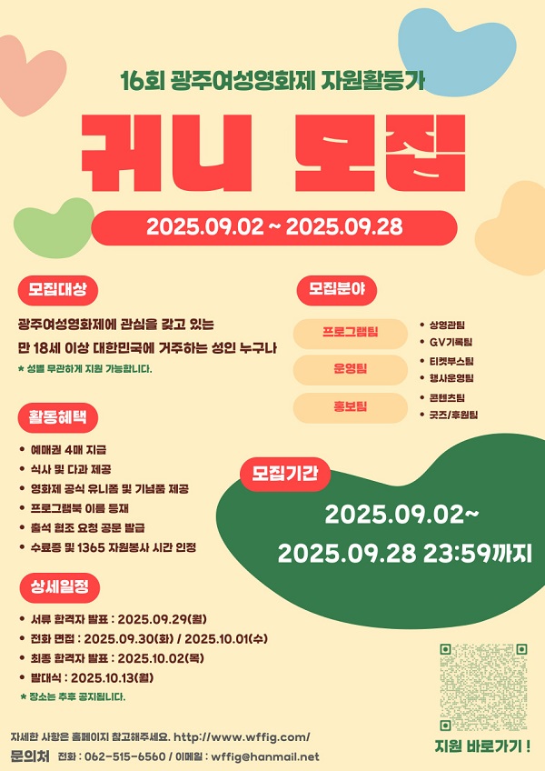16회 광주여성영화제에서 자원활동가 ‘귀니’를 모집합니다 !