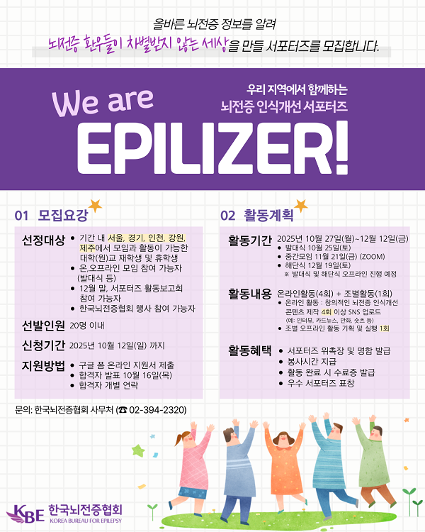 - 발대식 : 2025년 10월 25일(토) 14시~18시, 한국뇌전증협회 사무처