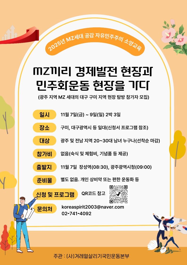 2025 자유민주주의 소양교육 'MZ끼리 경제발전 현장과 민주화운동 현장을 가다' - 대구, 구미 지역 참가자 모집 안내