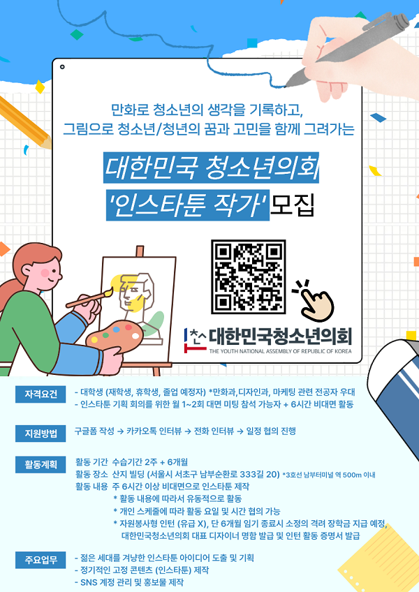(사) 대한민국청소년의회 2025 하반기 (인스타툰 작가) 모집