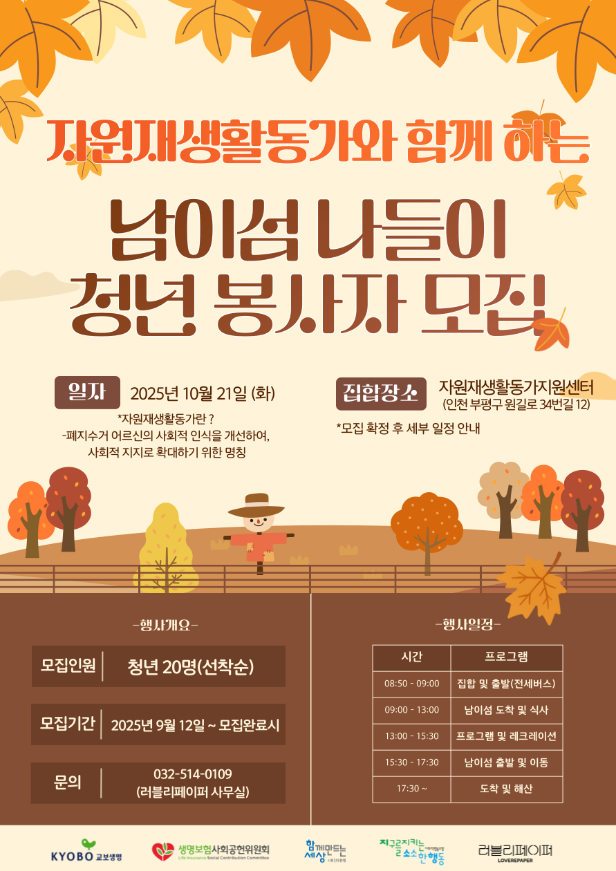 자원재생활동가와 함께하는 남이섬 나들이 청년봉사자 모집