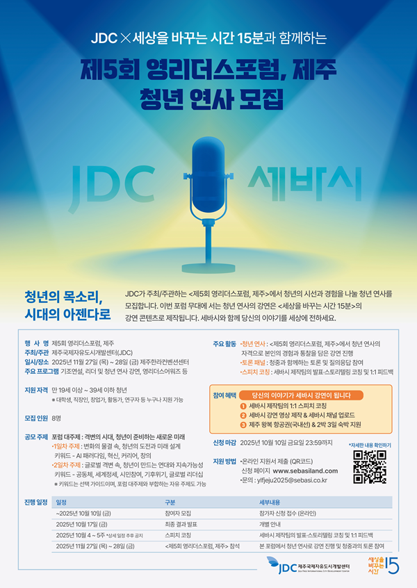 <제5회 영리더스포럼, 제주> 청년 연사 모집