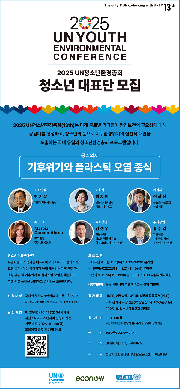 2025 UN청소년환경총회는 UNEP(유엔환경계획)과 에코나우, WFUNA(유엔협회세계연맹)이 공동주최하는