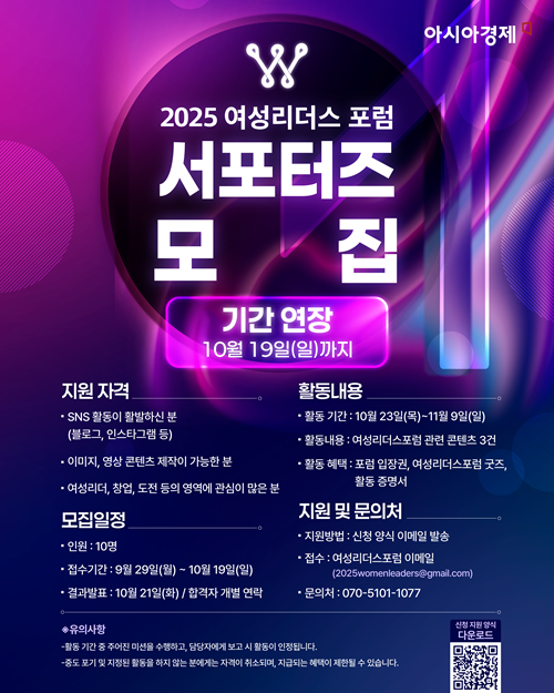 - 활동 혜택 : 포럼 입장권, 여성리더스포럼 굿즈, 활동 증명서