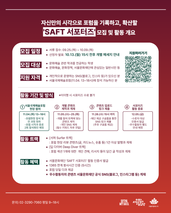 서울문화재단 2025년 서울국제예술포럼 SAFT 서포터즈 모집 안내