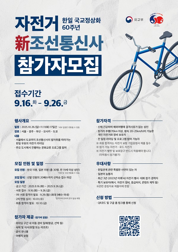 한일 국교정상화 60주년 자전거 新조선통신사 참여자 모집 ( 韓日国交正常化60周年 自転車 新 朝鮮通信使 )